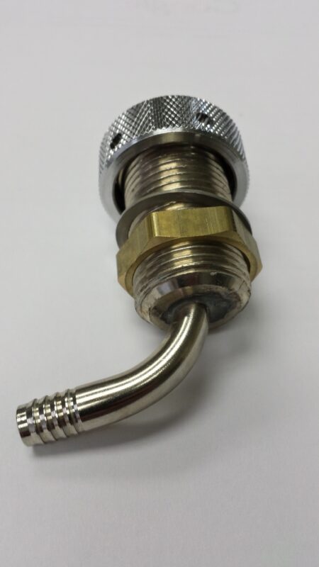 Beer Tower Shank with Bent Tailpiece Assembly, 1 3/4″ Length, 1/4″ Bore, Plastic Flange, 90 degree dent 1/4″ barb